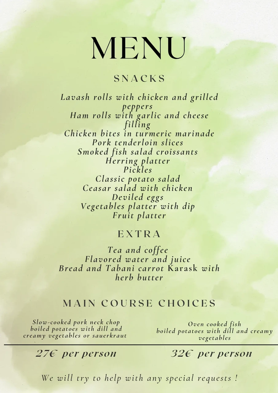 # We have a Classic Menu 26€/per person, children can take half a seat for half the price