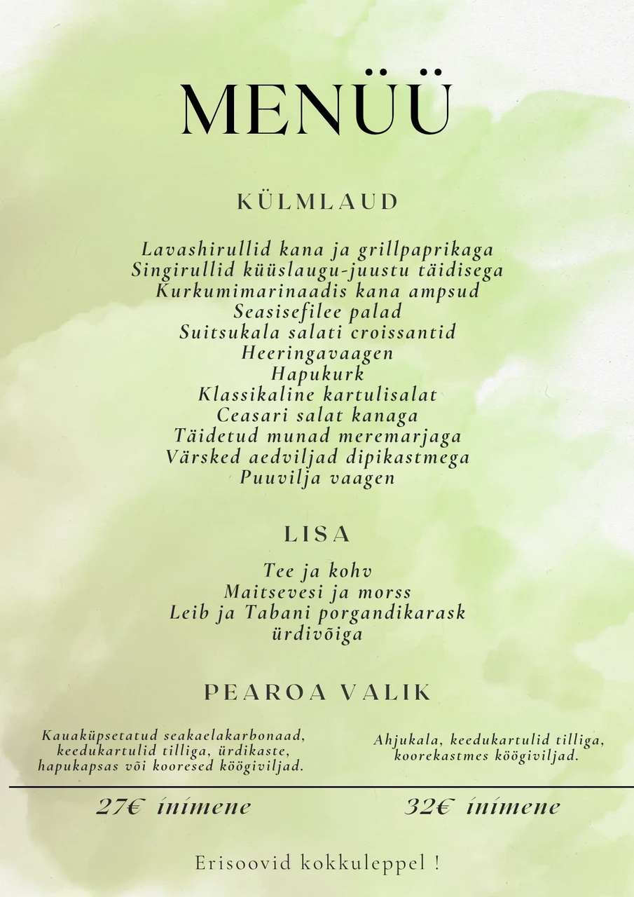 LAUPÄEVASI ANNAME VÄLJA AINULT TABANI PUHKETALU TOITLUSTUSEGA!